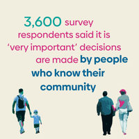 - Just over 3,600 respondents stressed that decisions should be made by people who know their community, with about 800 rating this as "quite important".